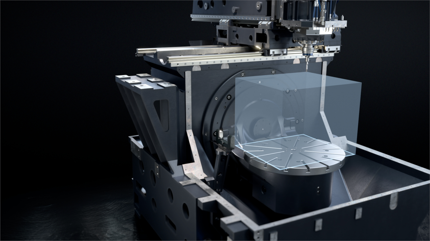 -35° ile +110° arasında döner tabla ve maks. 300 dev/dak devirli direkt tahrikli C ekseni, 300 kg'a kadar iş parçası ağırlığı